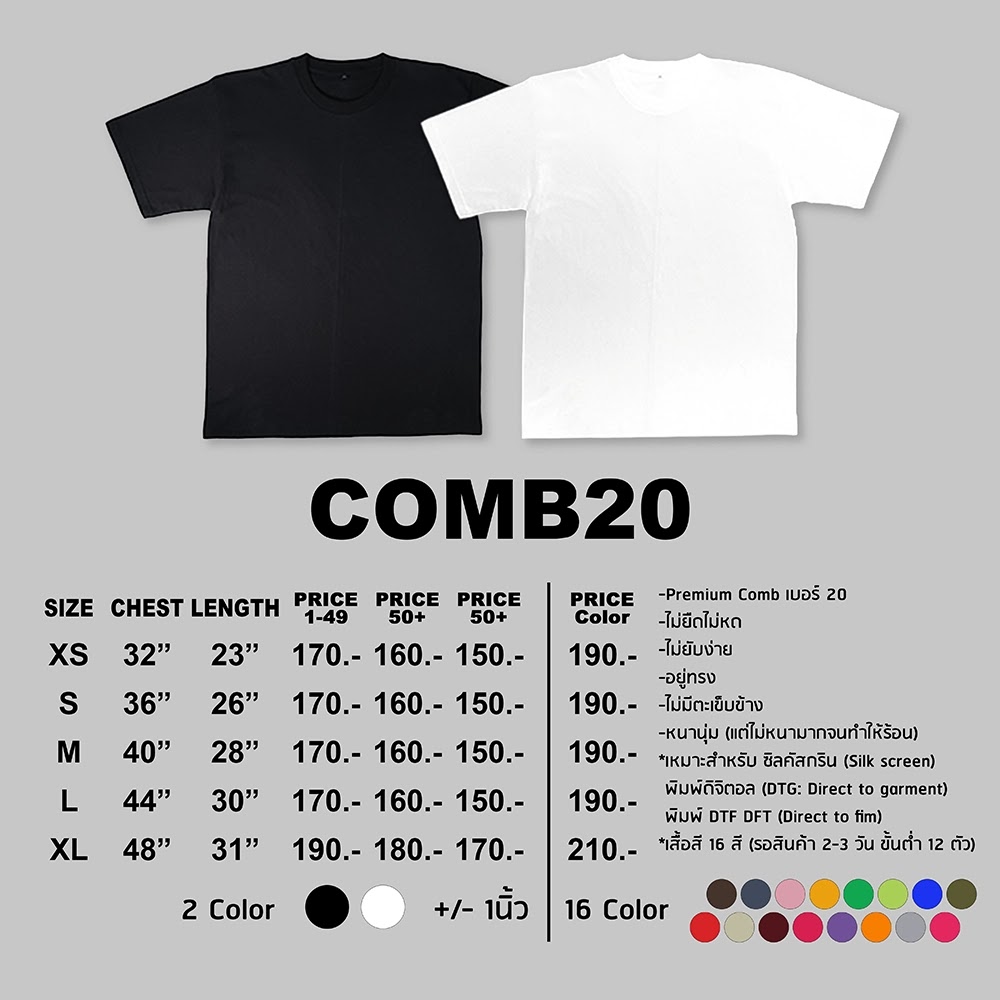 เสื้อ COMB20 – เสื้อยืดคอตตอน 100% เกรดพรีเมียม สกรีนสวย ใส่สบาย สีให้เลือกกว่า 16 เฉด